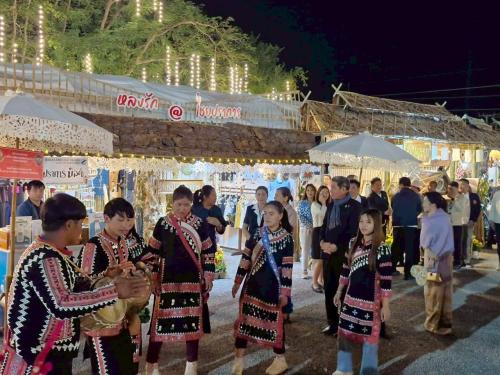 ในการนี้ นายปธิกร เอี่ยมสะอาด นายอำเภอไชยปราการ พร้อมด้วยนายกกิ่งกาชาดอำเภอไชยปราการ พัฒนาการอำเภอไชยปราการ เจ้าหน้าที่พัฒนาชุมชนอำเภอไชยปราการ ผู้ประกอบการOtop และทีมนักแสดงบ้านถ้ำง๊อบ ร่วมให้การต้อนรับ